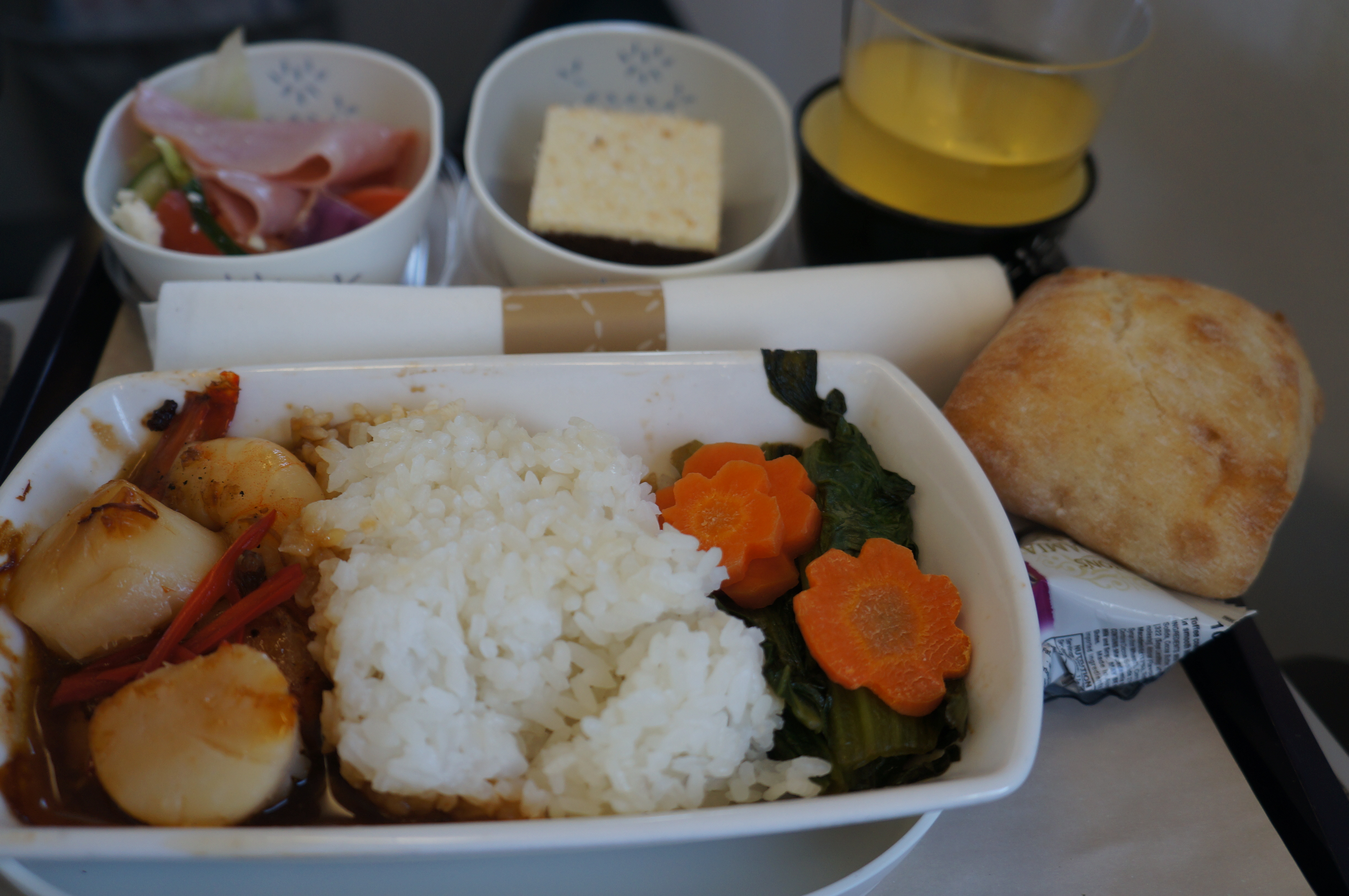 Meals: By the time the staff serve the first meal it is after 2 pm and I am so hungry I have already raided one of the packets of Macadamia nuts which are very moorish. I experienced a sudden unexpected surge of fondness for Australia as I looked at the image of the koala on the packet of macadamia nuts. Why? Surely I couldn’t already be missing my murderous cat Colin that prefers slashing my wrists to having a cuddle.