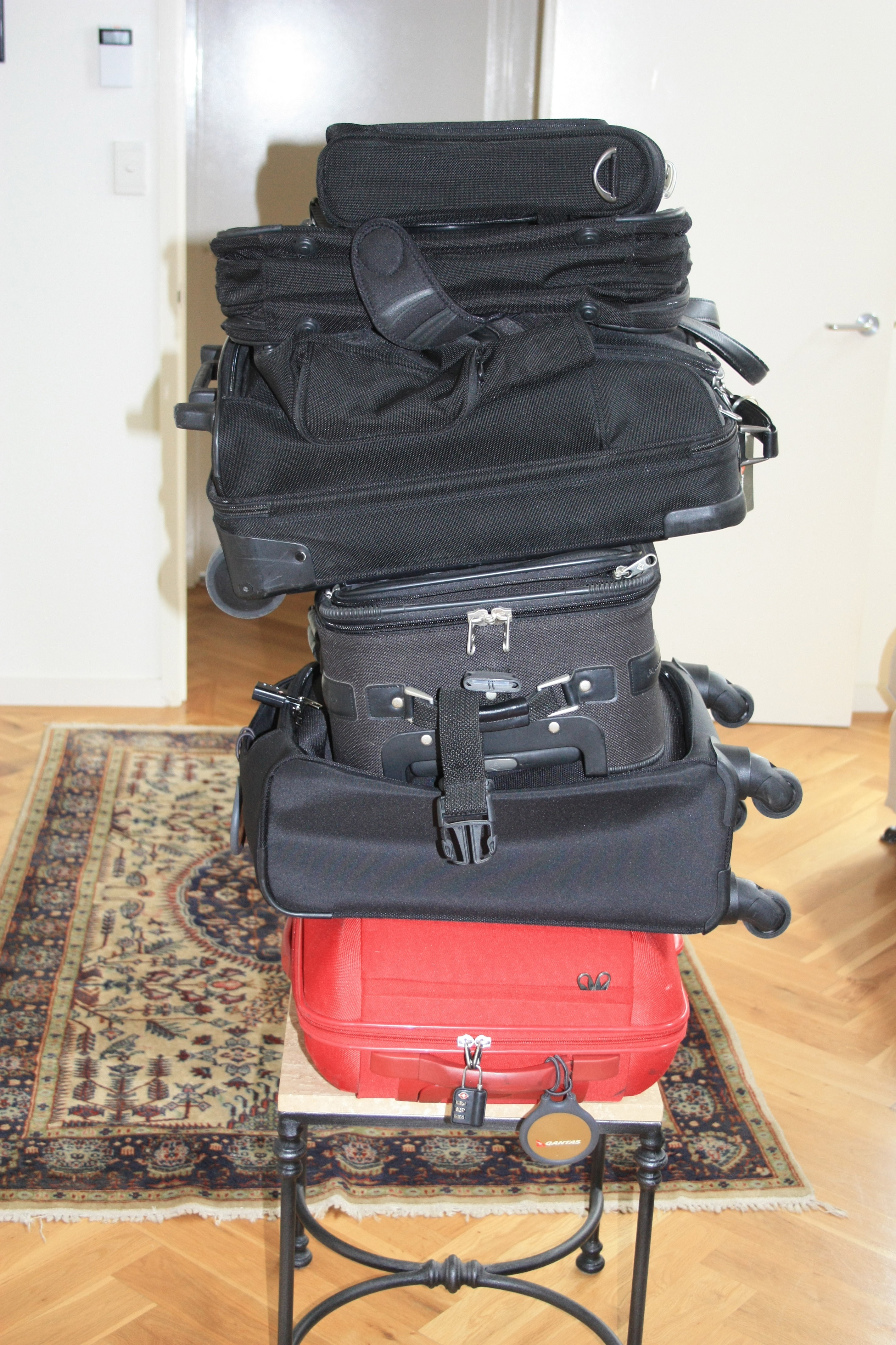 - Jewellery – don’t wear anything that can come undone or apart easily. Earrings should be low profile. I remove my earrings when I am sleeping on a plane and I store them in the toes of old stockings which are light and soft and can be tied off and placed in my glasses case so they don’t get lost.